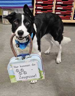 Unser Schulhund Guinness hat die Zeugnisse heute bereits zuverlässig und pünktlich vorbeigebracht und verabschiedet sich ebenfalls in die wohlverdiente Pause.