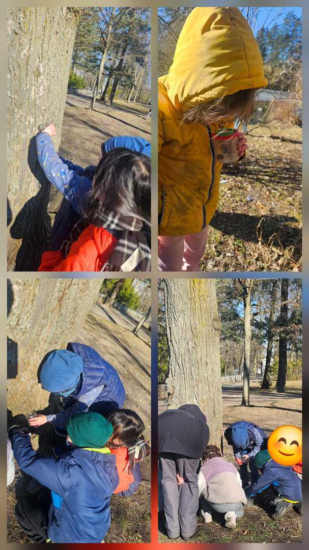 Die kleinen Forscher der 1a unterwegs im Park auf der Suche nach Insekten und anderen Krabbeltieren.