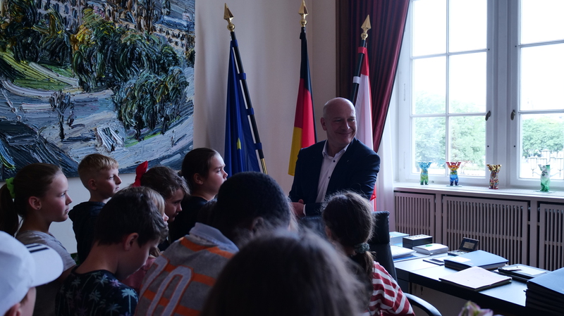 Bürgermeisters und die große Freitreppe wurden von den Kindern angeschaut und anschließend gab es noch eine Fragerunde mit unserem Regierungschef. Vielen Dank, Herr Wegner. Es war ein herzlicher