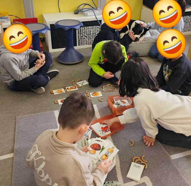 Kinder in der Freiarbeit Freiarbeit mit Kuschelzeit ;) Buchstabeneinführung ,,U" Guinni unterstützt.